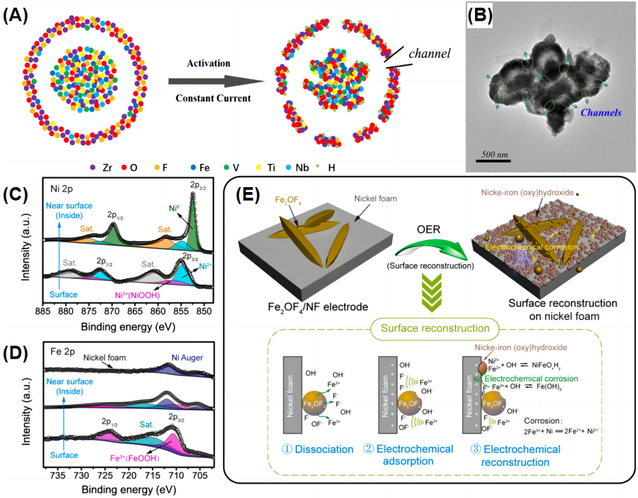 3.在电解水领域,本文聚焦在金属氟化物材料在催化过程中的表面重构行为与氟元素的作用,深入解析了这种提供优异性能的行为的诱因,机理与表现形式。